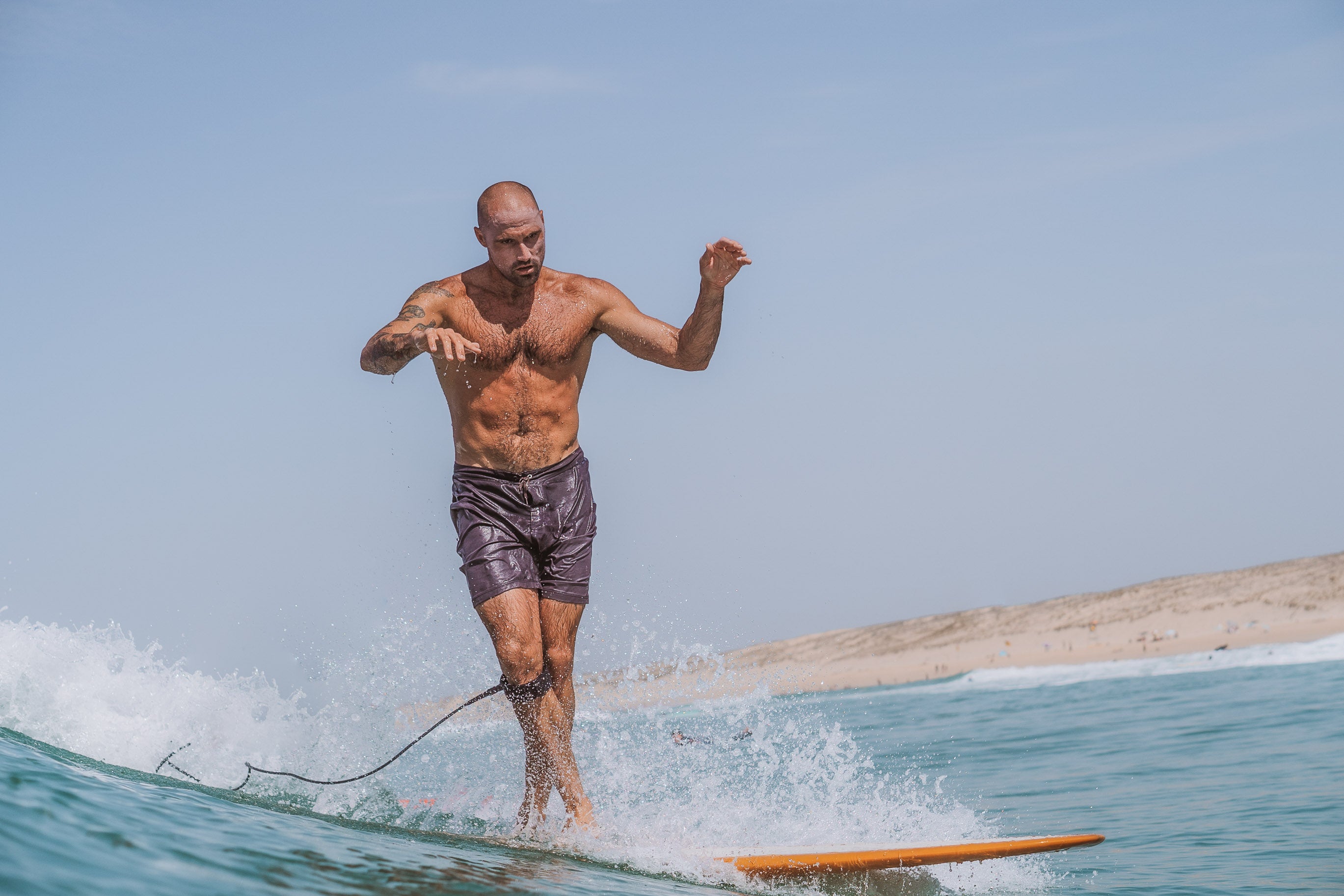Er kennt alle Schwierigkeiten, die Surfen lernen, da er nur ein paar Wochen im Jahr surfen und Unterricht nehmen kann. Das macht es zu einer echten Herausforderung, eine gleichmäßige Lernkurve zu erreichen.
