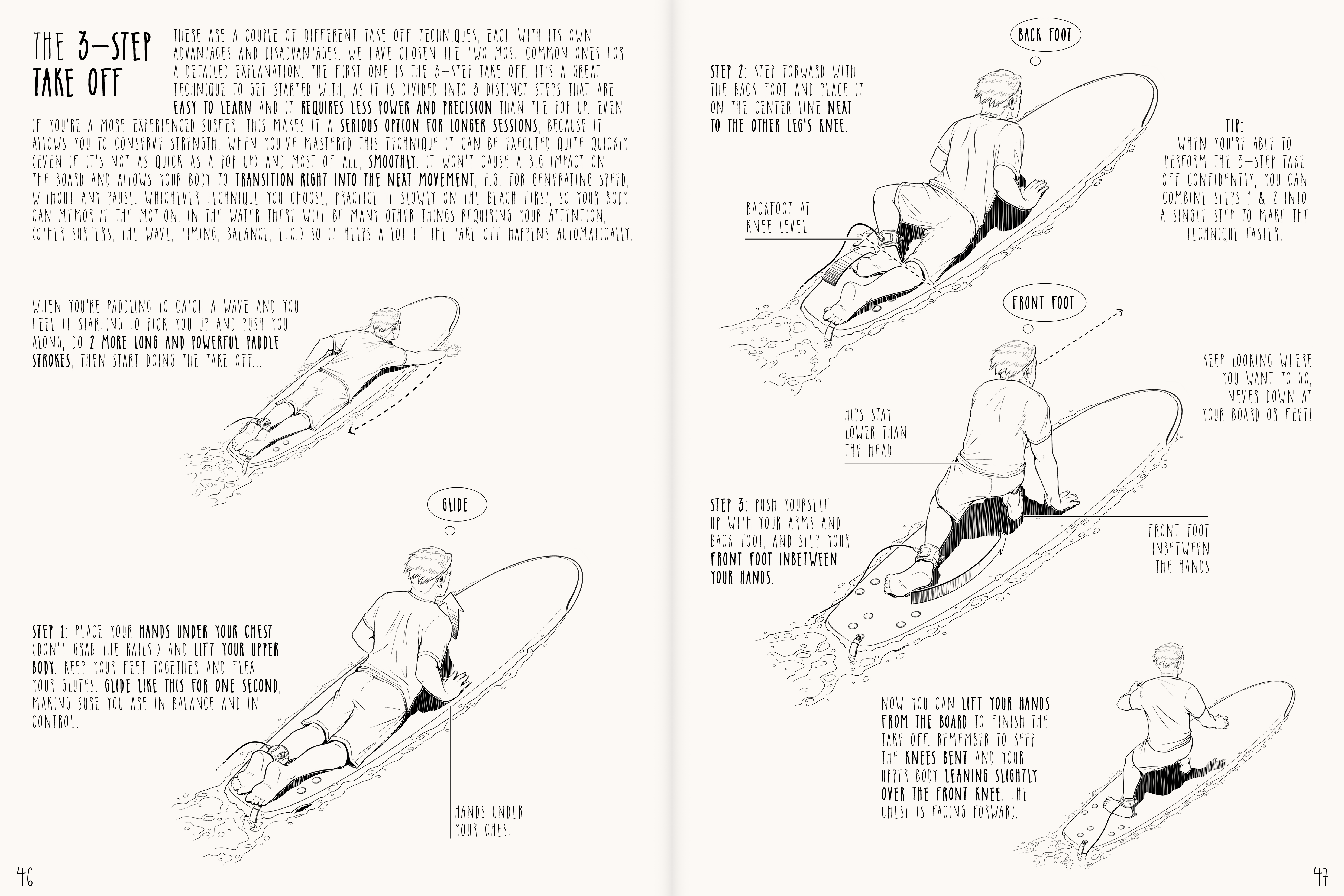 Step by step is the key to go from total beginner to more experience. In your Surf Companions Beginner book we not only explain the proper technique, we give you in depth insights about what your body really should do.