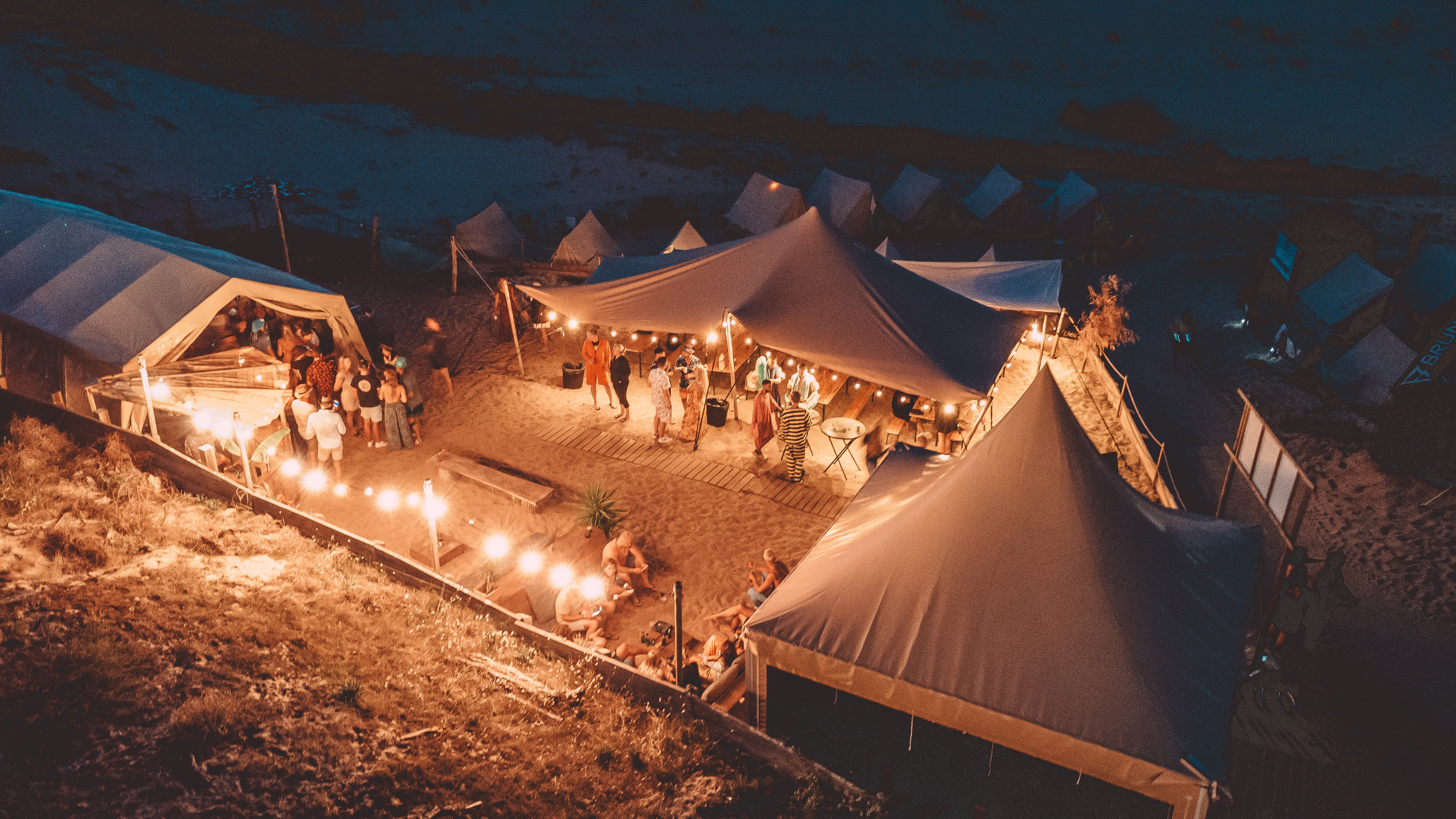Experience the ultimate in comfort with our glamping accommodations, available either shared or private, located just behind the dune. You won't find a spot closer to the beach than this!